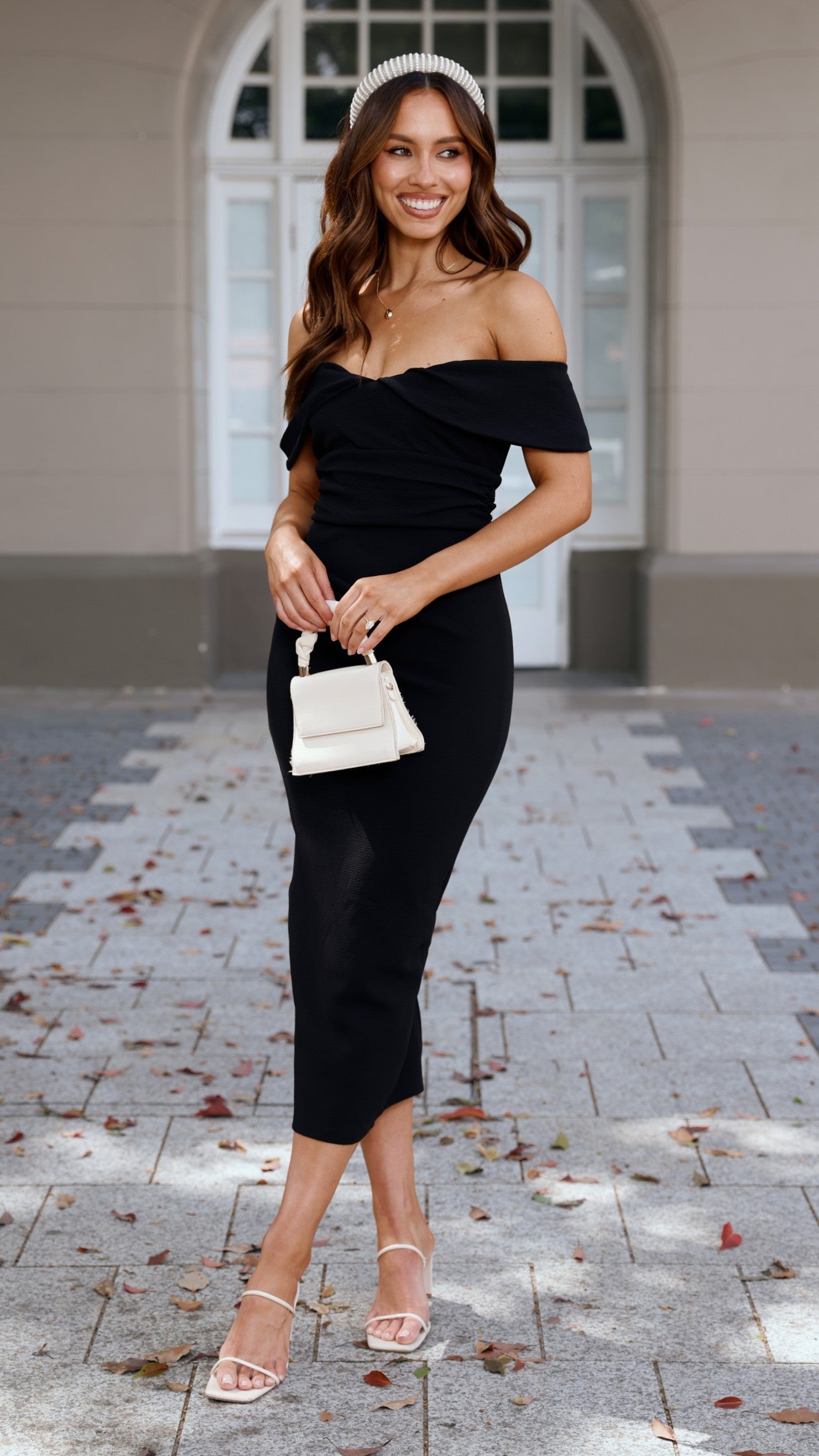 Embrace elegance with the Holly Midi Dress. This bodycon silhouette highlights your figure with a chic off-the-shoulder neckline secured by a discreet silicon grip for comfort and fit. Side gathered detailing adds subtle texture, while the invisible back zipper ensures a sleek finish. A tasteful split at the lower back brings a refined touch of allure to this sophisticated dress, perfect for evening occasions or stylish events.